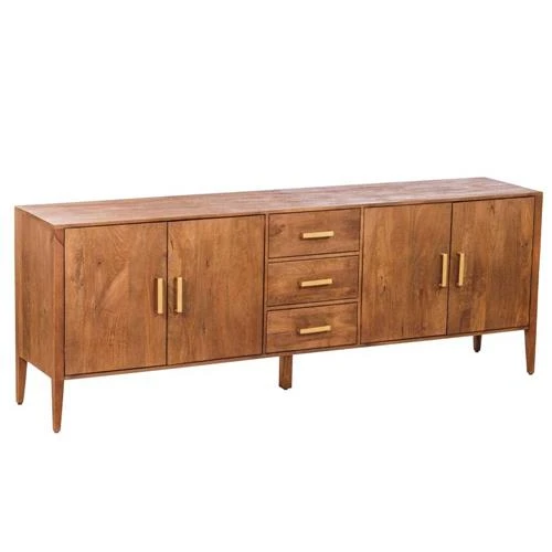 Das Belvedere Sideboard ist ein schönes Möbelstück aus Mangoholz. Das Mangoholz hat eine tolle dunkelbraune Behandlung. Kombiniert mit goldenen Details in den Griffen, ist Belvedere eine moderne Möbelserie. Mit seinen vielen Aufbewahrungsmöglichkeiten in Form von Schubladen und Türen ist es nicht nur äußerst praktisch, sondern auch ein echter Blickfang in Ihrer Einrichtung. Schauen Sie sich weitere Möbel aus der Serie Belvedere an, kombinieren Sie sie und schaffen Sie ein schönes Ganzes.