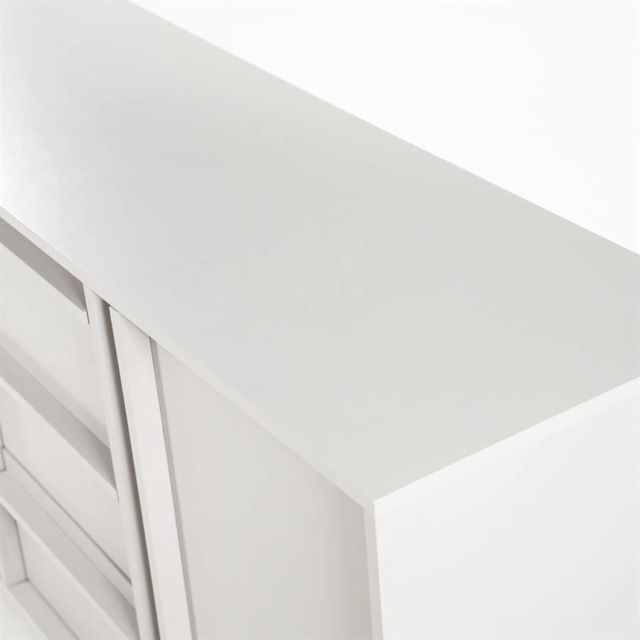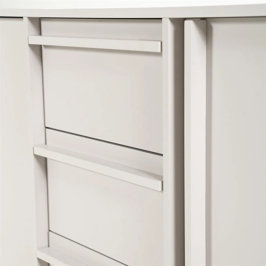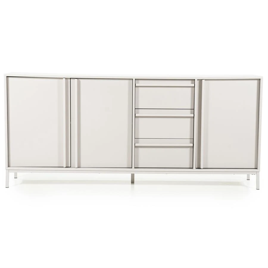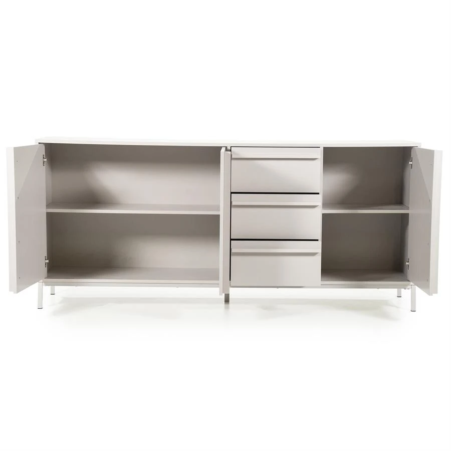 Anrichte Boaz ist eine schöne Kombination aus modern und industriell. Der Anrichte besteht aus MDF und Metall und ist in einem beigen Farbton gehalten. Der beige Farbton verleiht Boaz ein modernes Aussehen, aber die Metallrahmen geben ihm einen robusten Kontrast. Boaz hat 2 Schubladen und Türen für reichlich Stauraum.