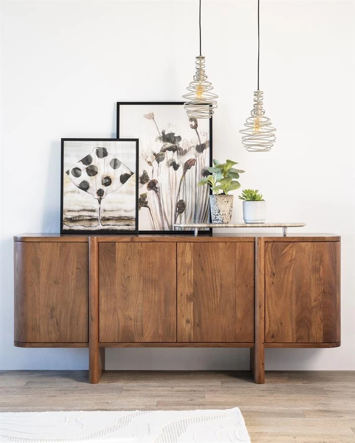 Wandschrank Julian aus der Kollektion von Eleonora ist ein echter Blickfang. Julian ist aus massivem Akazienholz gefertigt und hat einen warmen Farbton. Der warme Farbton zusammen mit den runden Formen machen Julian zu einem echten Bild. Julian besteht aus mehreren Platten, auf denen Sie z.B. Ihre Dekorationsartikel platzieren können. Das natürliche Aussehen in Kombination mit den runden Formen machen Julian zu einem stilvollen Schrank, der sich in verschiedene Interieurs einfügen lässt.