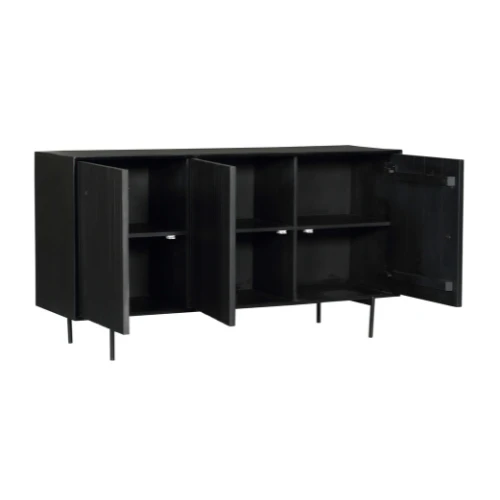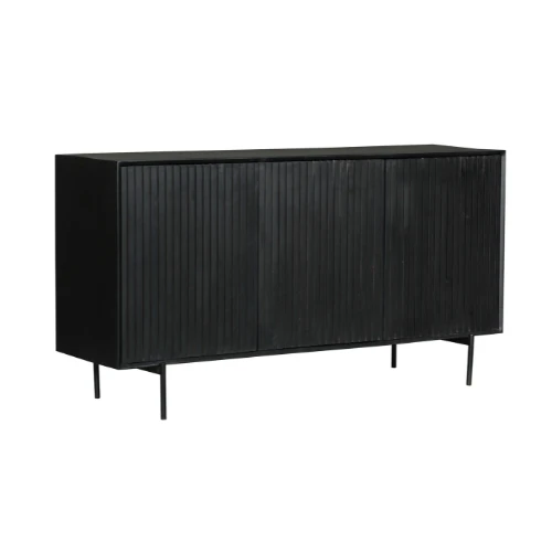 Das Anrichte Madison ist ein robuster Schrank aus Mangoholz. Der Metallrahmen ist schwarz lackiert. Die Türen aus Mangoholz haben ein vertikales Lamellenmuster und sind ebenfalls schwarz lackiert. Durch das schlichte Design und die Farben lässt sich der Schrank leicht mit einem modernen oder industriellen Wohnstil kombinieren. Das vertikale Muster lässt das Anrichte auch in einem Retro-Wohnstil gut aussehen. Außerdem bietet das Anrichte, das mit 3 oder 4 Türen erhältlich ist, viel Stauraum für Ihre Sachen.