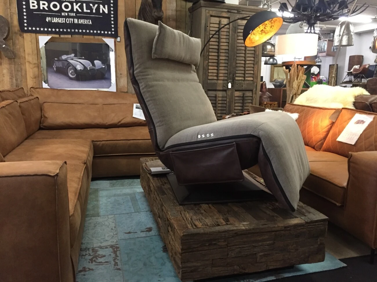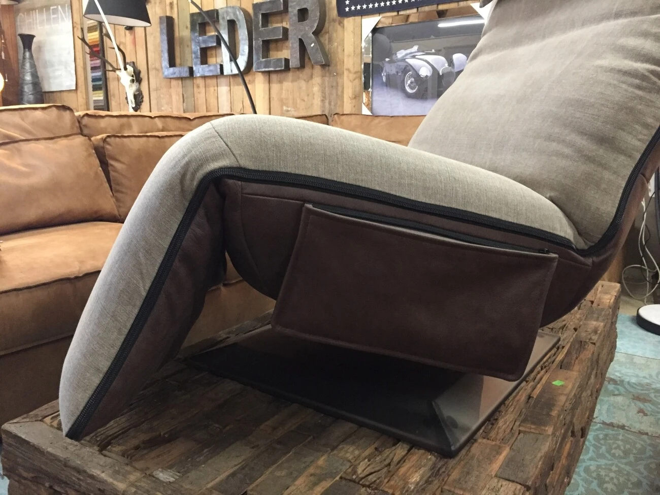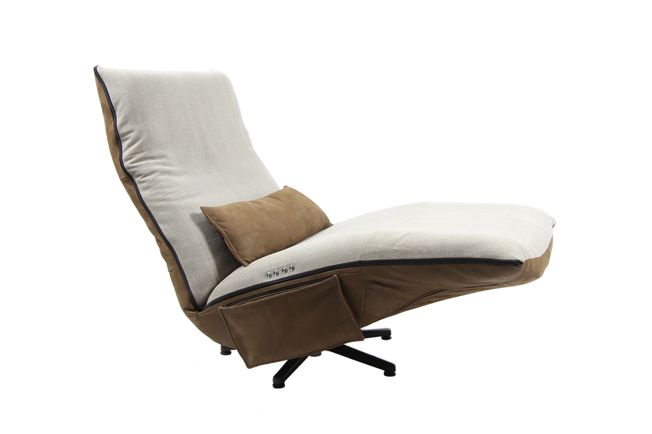 Luxuriöser Relaxsessel Barbara mit zwei Farben in robusten Leder und weichem Stoff.