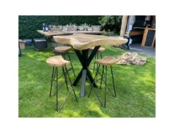 Der Barhocker Yulia ist aus Suarholz und Metall gefertigt, was ihm einen industriellen und robusten Look verleiht. Der Barhocker ist sowohl für den Innen- als auch für den Außenbereich geeignet. Das Holz des Hockers ist unbehandelt. Kombinieren Sie den Hocker mit einem stabilen Stehtisch.