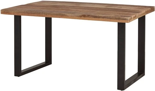 Der Rambo bartisch ist aus massivem Mangoholz mit einer Stärke von 5,5 cm gefertigt. Die Platte ist mit einer matten, rauen Oberfläche lackiert. Der Tisch hat ein industrielles Metallgestell, das mit einer schwarzen Pulverbeschichtung versehen ist. Das U-Bein setzt einen modernen Akzent.