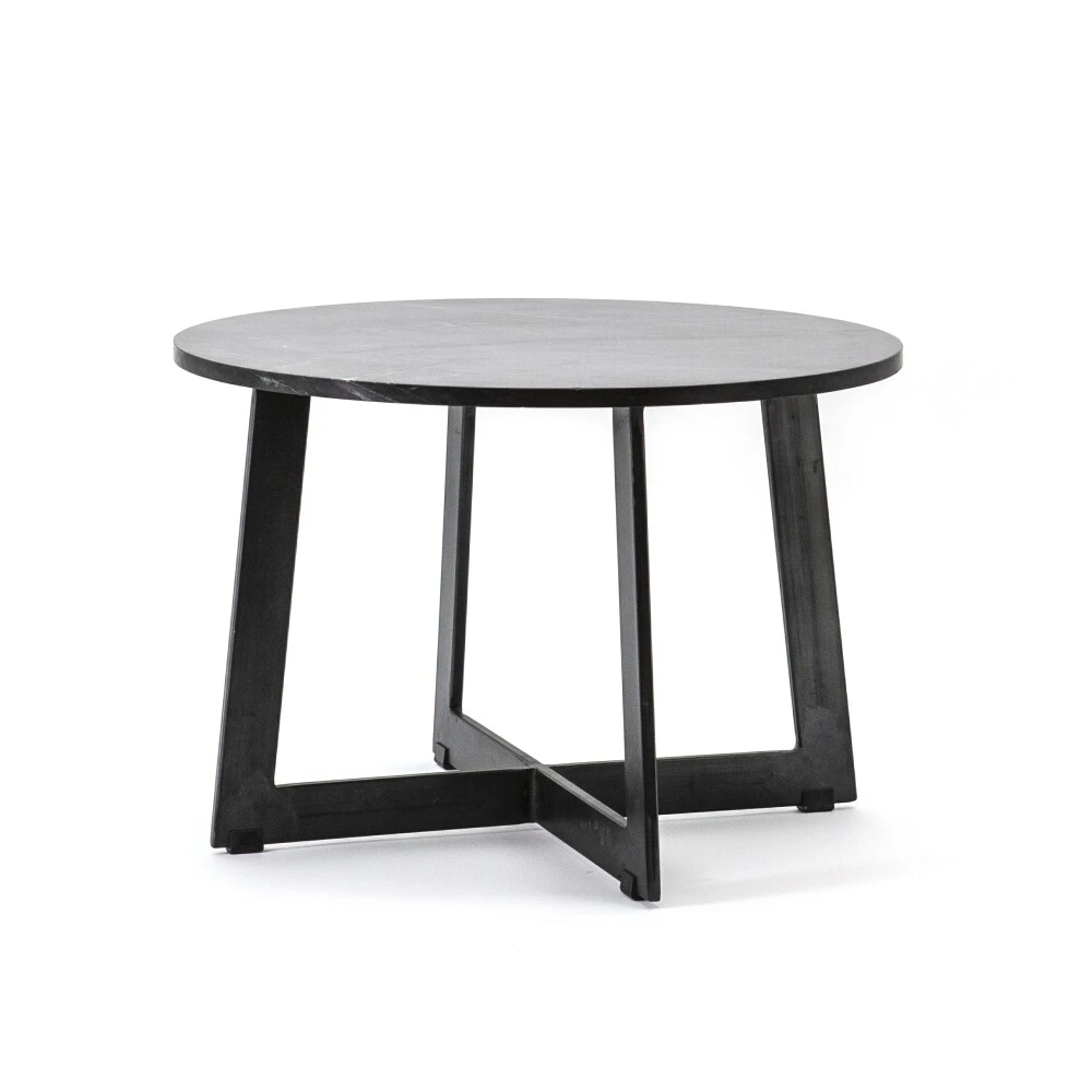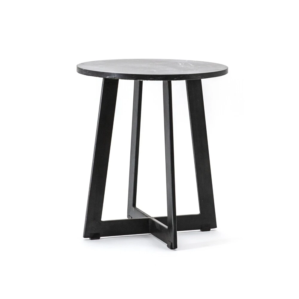 Moderner Beistelltisch aus dunklem Marmor und Eisen. Dieser Tisch ist in klein, mittel und groß erhältlich.