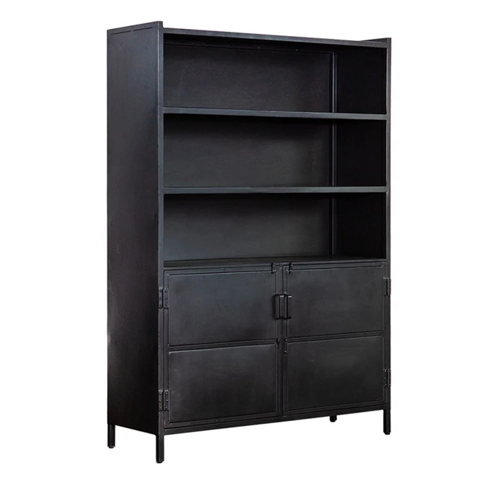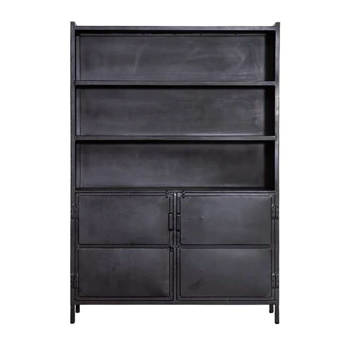 Industrieller Bücherschrank komplett aus Eisen mit 2 Türen.