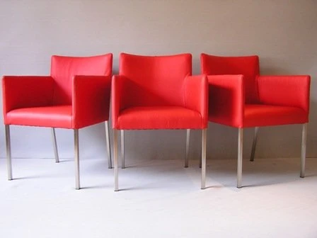 Buon ist ein moderner quadratischer Stuhl mit Edelstahlbeinen.