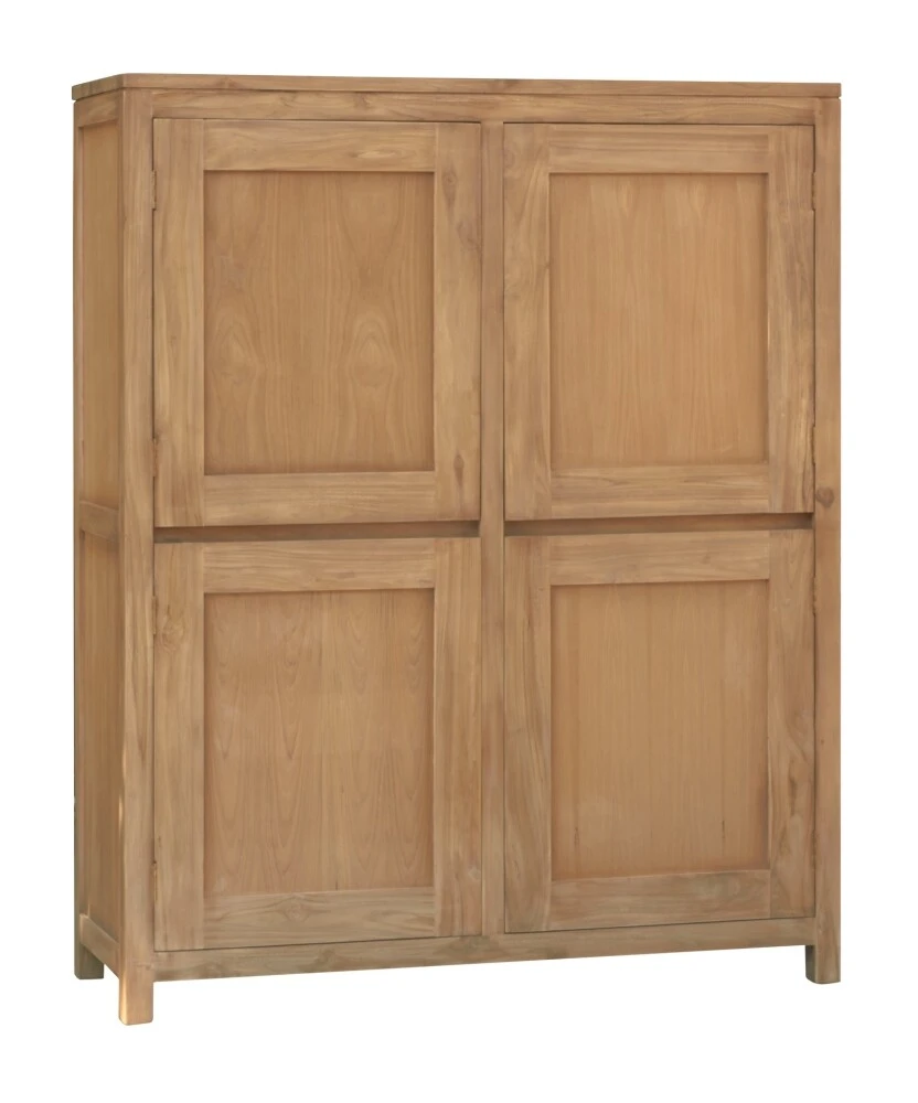 Der Schrank mit 4 Türen aus dem Corona-Wohnprogramm von Tower Living besteht aus unverarbeitetem Teakholz.