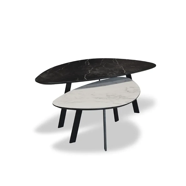 Der Couchtisch 1148 ist ein modern gestalteter Couchtisch aus HPL. Die Tischplatte hat eine Kieselsteinform und eine Facettenkante, die Platte ist 1,8 cm dick und hat eine Marmoroberfläche und ein luxuriöses Aussehen. HPL ist ein sehr widerstandsfähiges und verschleißfestes Material, das auch hohen Temperaturen standhalten kann und somit sehr langlebig ist. Der Couchtisch kann in verschiedenen Ausführungen bestellt werden.