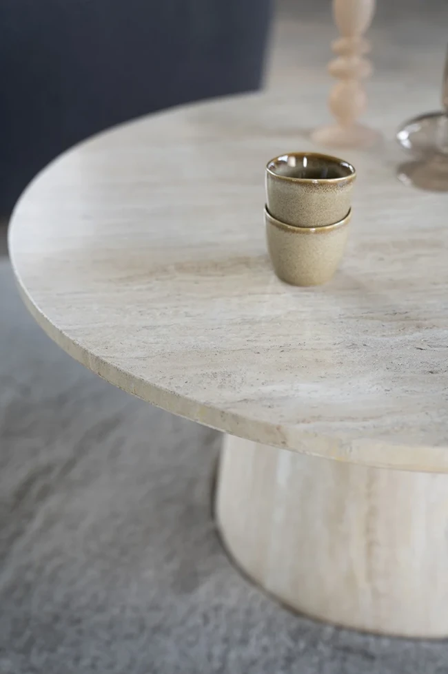 Der Couchtisch Aime ist ein schöner, moderner Tisch aus dem schönen Naturstein Travertin. Dieses Material sorgt für ein schickes, luxuriöses Aussehen. Mit seiner weiß-beigen Farbe fügt sich Aime perfekt in die aktuellen Einrichtungstrends ein. Schauen Sie sich auch den Beistelltisch Aime an und stellen Sie ein schönes Ensemble zusammen.