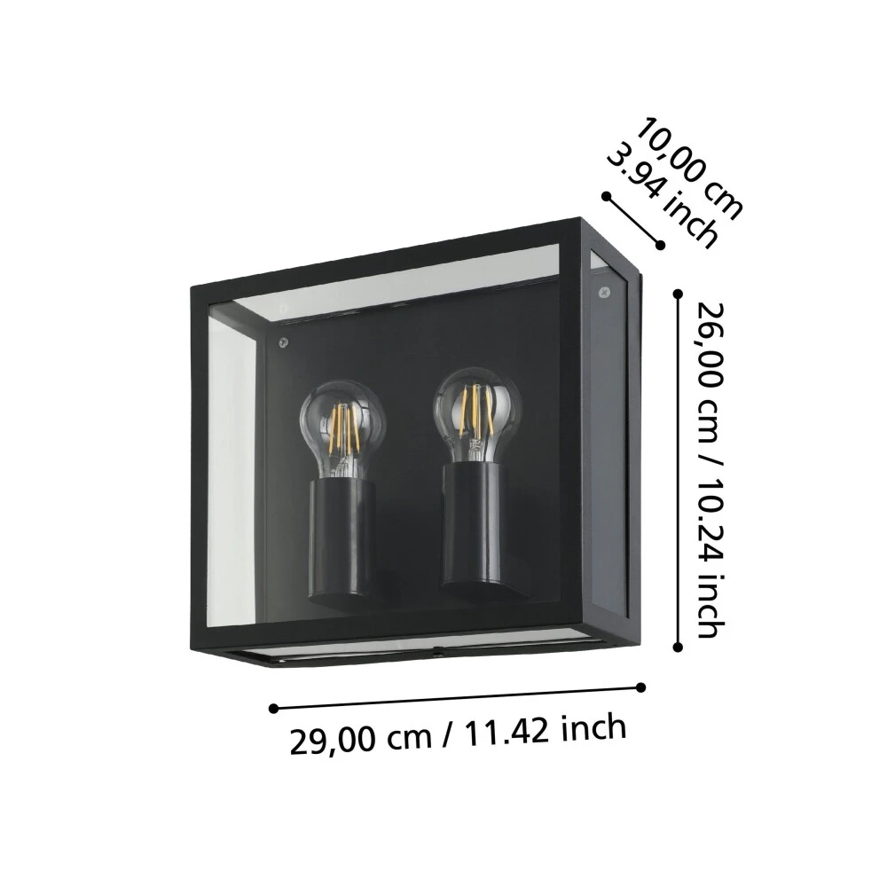 Alamonte ist eine industrielle Wandleuchte mit einem schwarzen Rahmen und geraden Formen. Die Leuchte ist aus Glas und Stahl gefertigt. Wenn Sie die Lampe mit einem dekorativen Leuchtmittel versehen, können Sie auf Ihrem Balkon oder in Ihrem Garten die richtige Atmosphäre schaffen. Kombinieren Sie die Wandleuchte mit einer der anderen Leuchten aus der Alamonte-Kollektion.