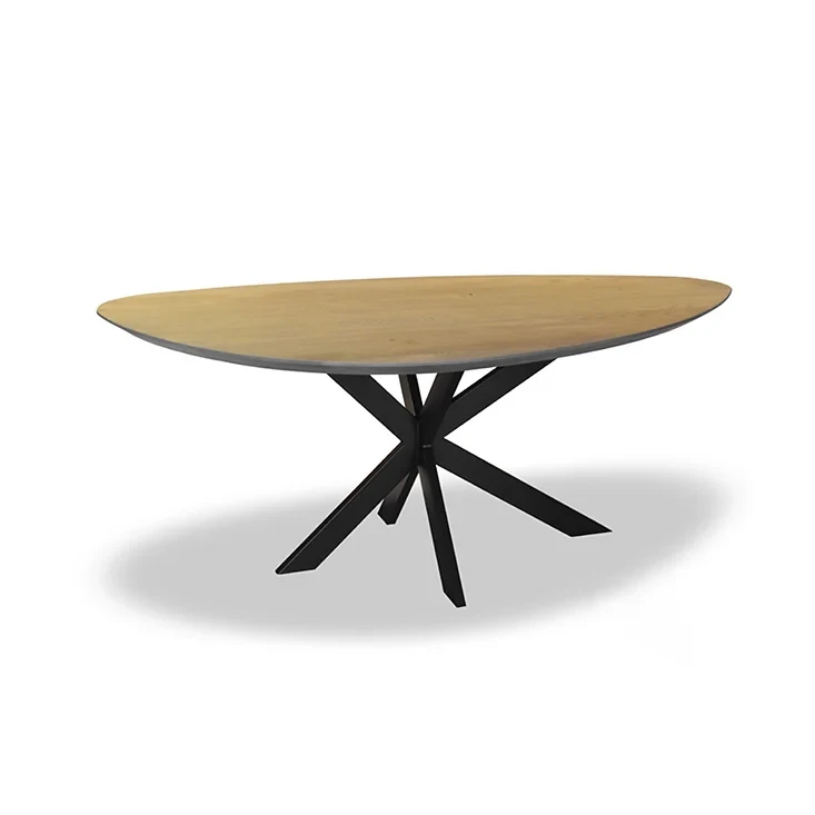 Esstisch 994 ist ein wunderschöner, modischer Esstisch aus Eichenholz. Der Tisch hat eine einzigartige, kieselsteinförmige Platte mit einer facettierten Kante. Das Design des Tisches verleiht ihm einen modernen Look. Die Tischplatte ruht auf einem schwarzen Spinnenbein aus Metall. Der Esstisch ist in mehr als 20 verschiedenen Farben und mit unterschiedlichen Gestellen erhältlich.