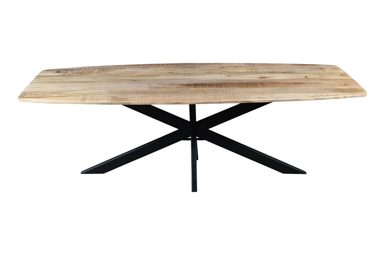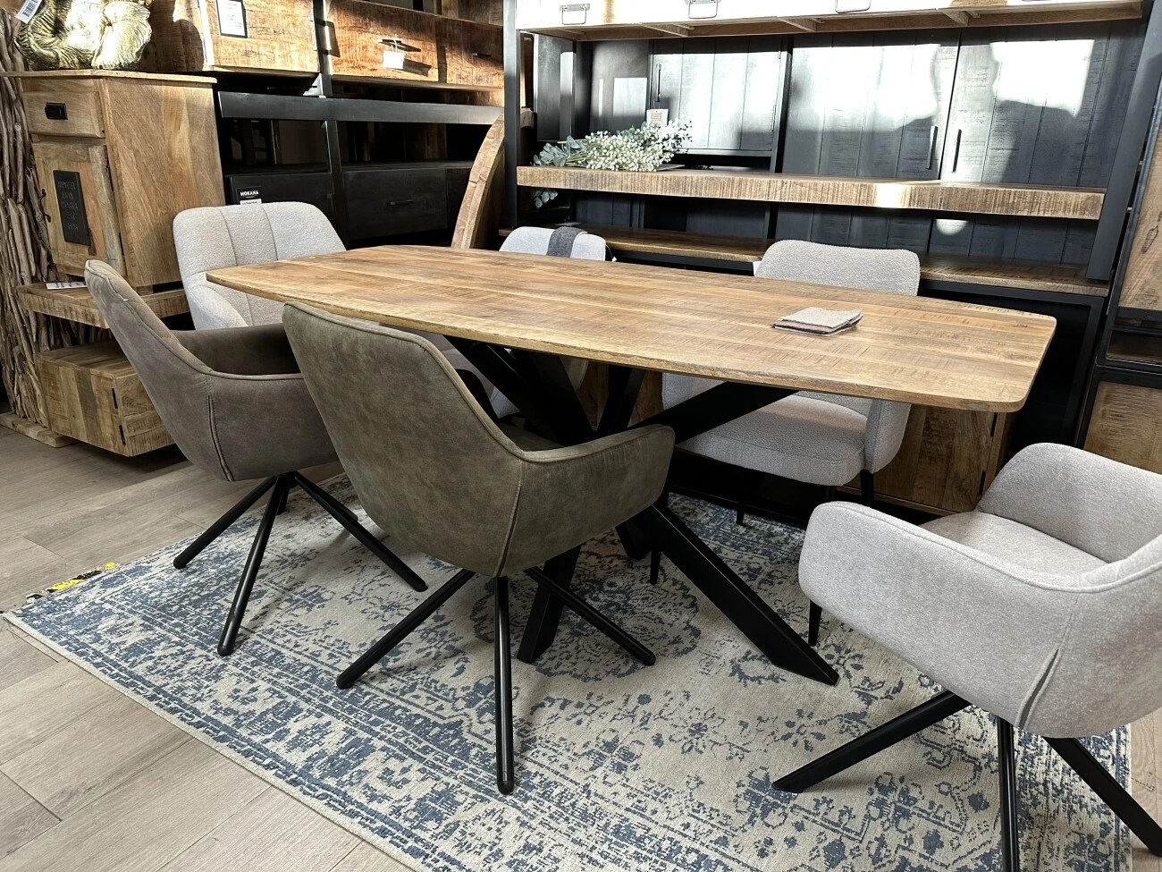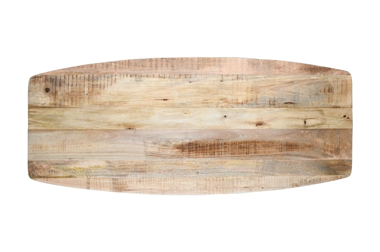 Der Esstisch Dänische Oval ist ein moderner Esstisch. Der Esstisch erhält seine moderne Form durch seine dänische Ovalform und die facettierte Kante. Die Platte ist aus massivem Mangoholz gefertigt und hat eine Dicke von etwa 5,5 cm. Die Platte ist natürlich lackiert, wodurch sich der Tisch leicht mit verschiedenen Interieurs kombinieren lässt.