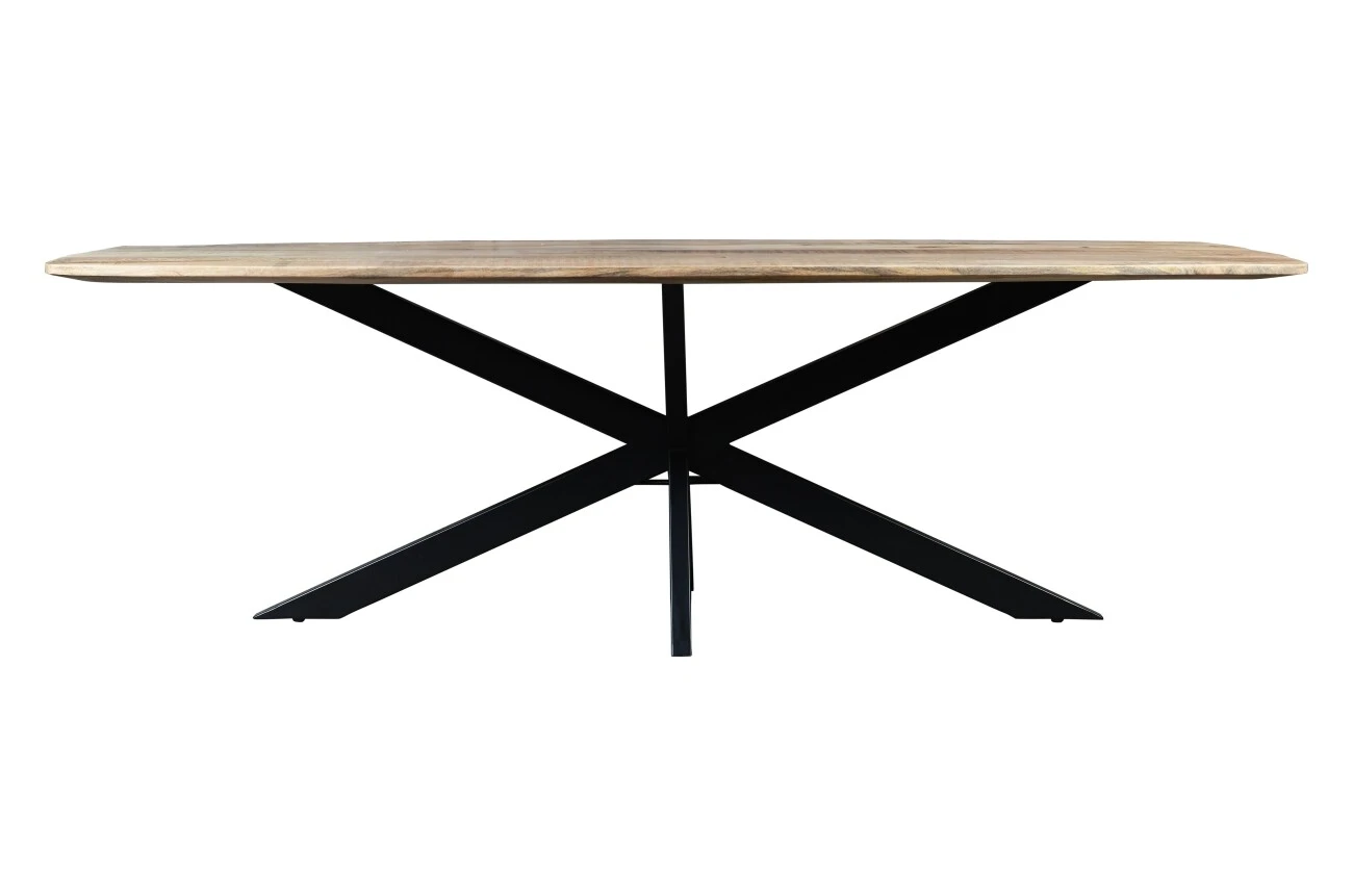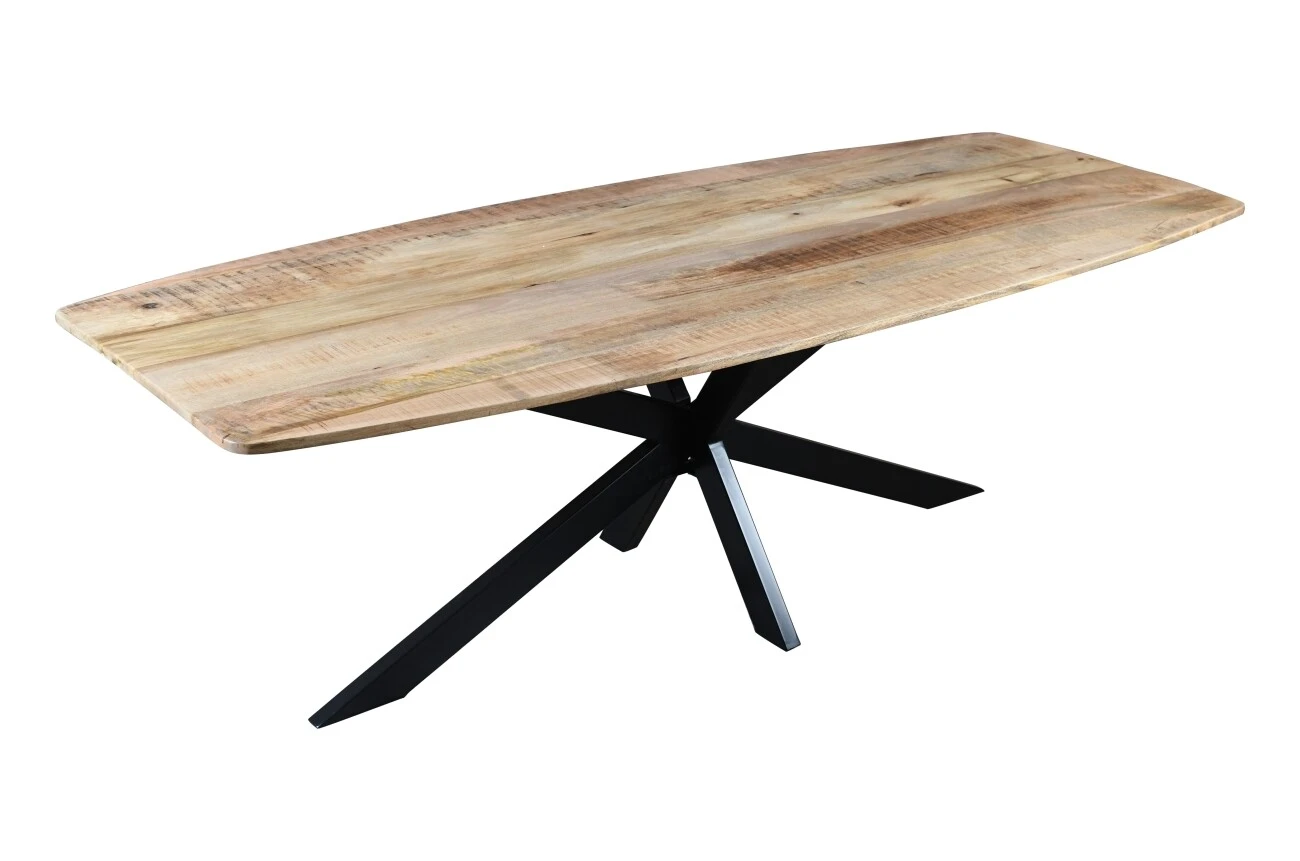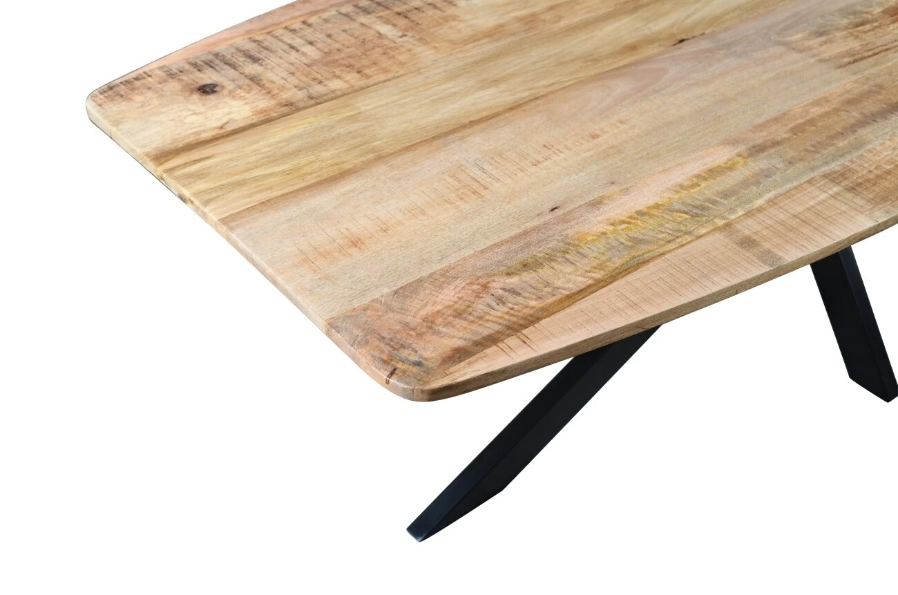 Der Esstisch Dänische Oval ist ein moderner Esstisch. Der Esstisch erhält seine moderne Form durch seine dänische Ovalform und die facettierte Kante. Die Platte ist aus massivem Mangoholz gefertigt und hat eine Dicke von etwa 5,5 cm. Die Platte ist natürlich lackiert, wodurch sich der Tisch leicht mit verschiedenen Interieurs kombinieren lässt.