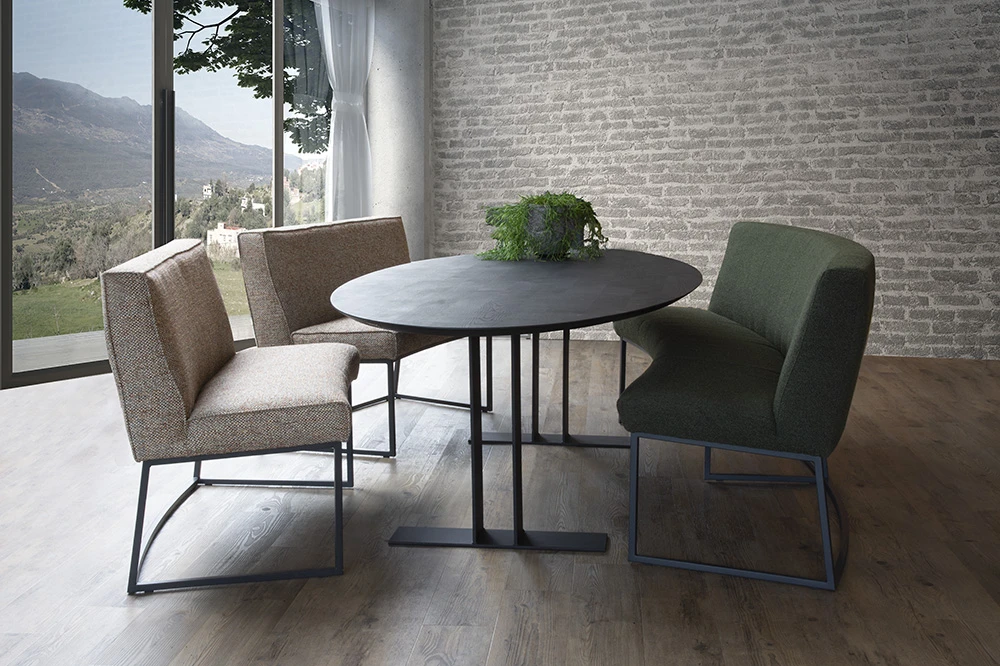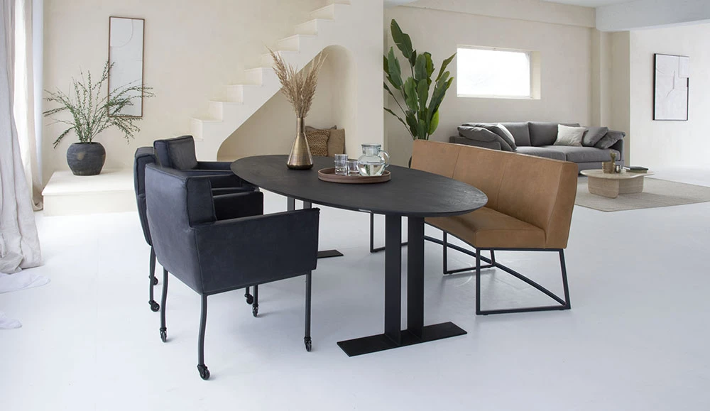 Lara ist eine modern gestaltete Esszimmerbank aus der Kollektion von Het Anker. Lara ist eine vollgepolsterte Esszimmerbank mit dem Sitzkomfort eines Sessels. Die Esszimmerbank ist in verschiedenen schönen Ledern und Stoffen erhältlich und hat ein Metallbein. Mit ihrer ovalen Form passt Lara perfekt an einen ovalen Esstisch. Außerdem kann das Sofa mit verschiedenen Nähten veredelt werden. Lara ist auch als Barsofa, Ecksofa und gerades Sofa erhältlich.