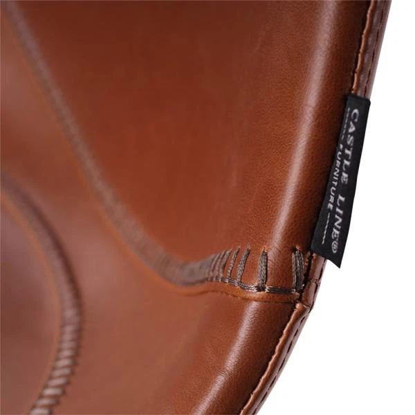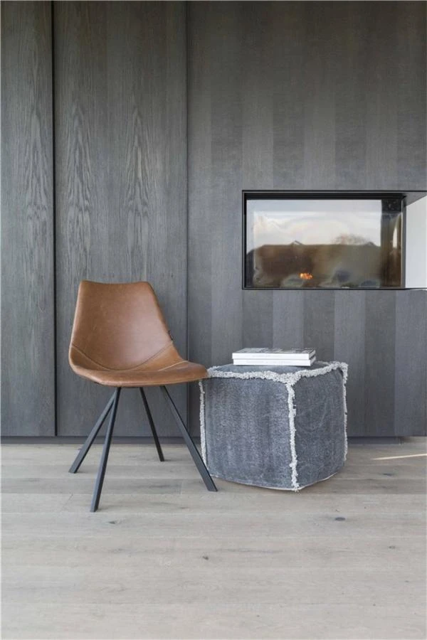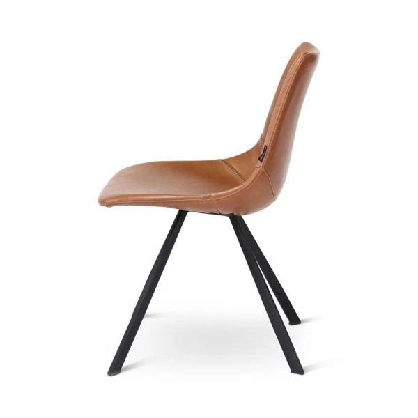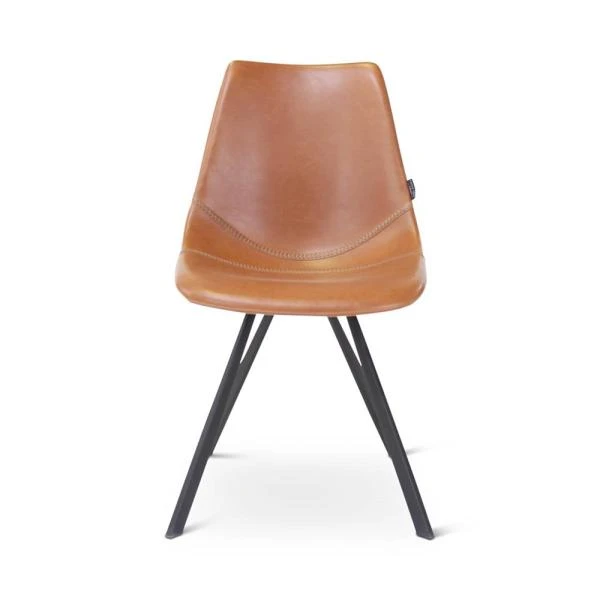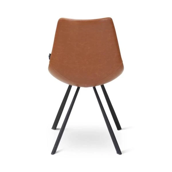 Der moderne Esszimmerstuhl Alicia ist ein Eimerstuhl aus cognacfarbenem PU-Leder mit schwarzem Fuß. Alicia passt zu modernen, rustikalen und industriellen Interieurs.