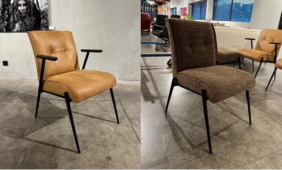Der Esszimmerstuhl Axel ist ein schöner Designstuhl von Het Anker. Axel ist herrlich bequem mit Nähten in der Rückenlehne. Auffallend an diesem Esszimmerstuhl ist das schwarze Gestell in Kombination mit der Armlehne. Die Armlehne ist mit Armstützen ausgestattet, die in Schwarz oder Nussbaum erhältlich sind. Axel ist auch in schönen Ledern und Stoffen erhältlich.
