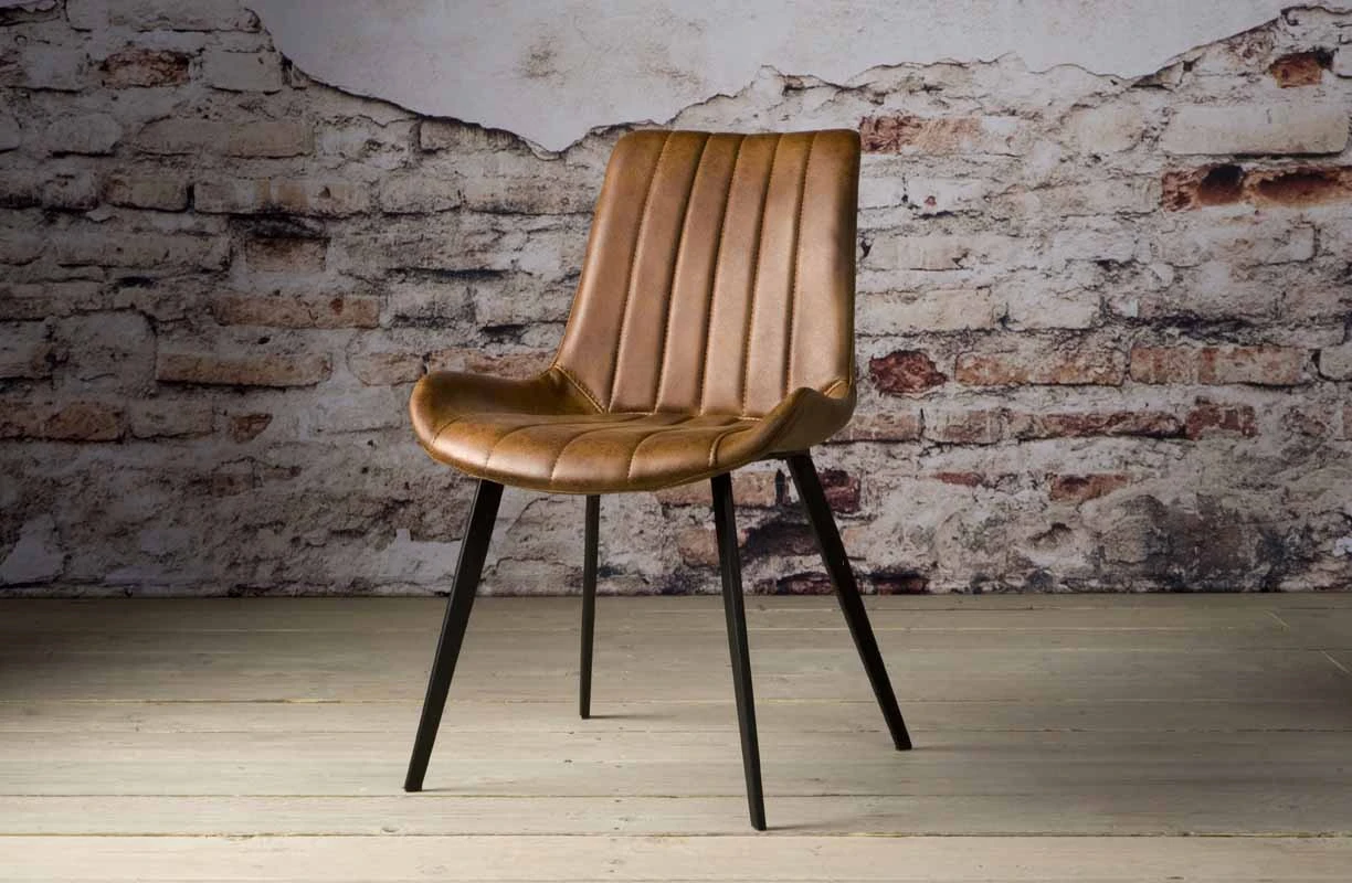 Komfortabler Esszimmerstuhl Eljas ist erhältlich in anthrazit, braun und cognac.