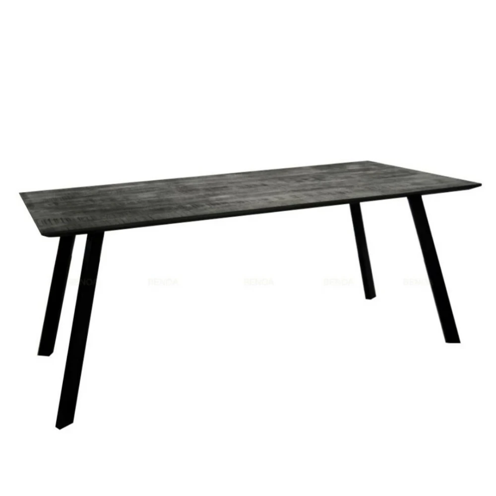 Der esszimmertisch Berlin ist ein robustes Modell mit einem einzigartigen Bein. Da die Beine leicht nach außen laufen, steht der Tisch sehr stabil. Bei dem Entwurf wird Mangoholz mit schwarzem Metall kombiniert. Diese Materialzusammensetzung verleiht dem Tisch ein industrielles Aussehen. Auch mit natural Tischplatte erhältlich.