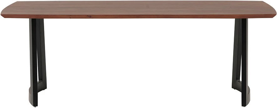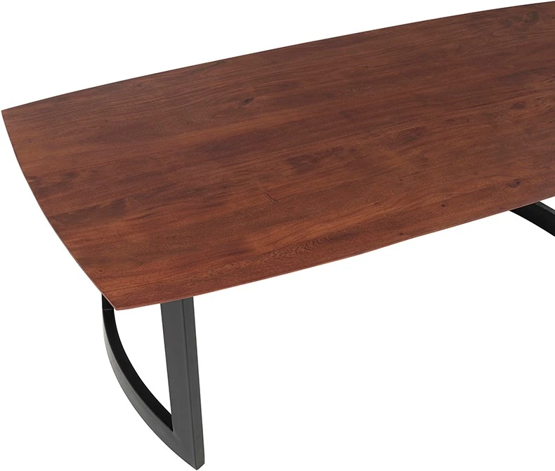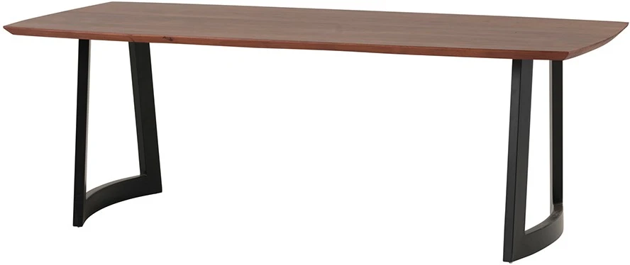 Der Esszimmertisch Kenya hat dank seiner dänischen, ovalen Platte und der schrägen Kanten ein modernes Design. Die Platte des Tisches Kenya ist aus Akazienholz mit einer kastanienfarbenen Oberfläche gefertigt. Die Tischbeine sind aus Metall und haben eine runde Form, so dass sie sowohl zu modernen als auch zu industriellen Innenräumen passen.
