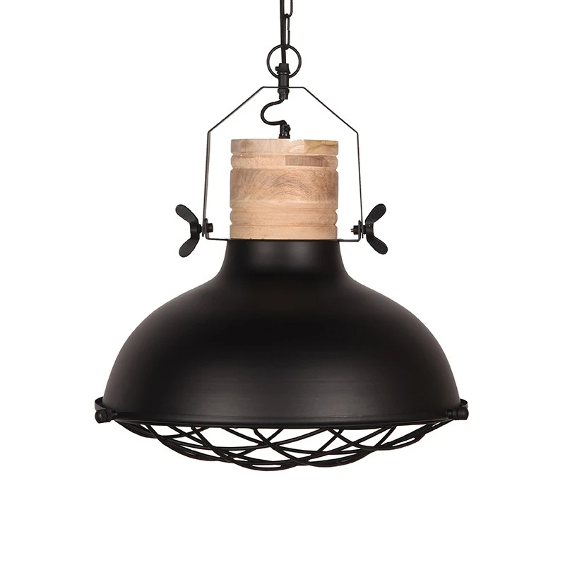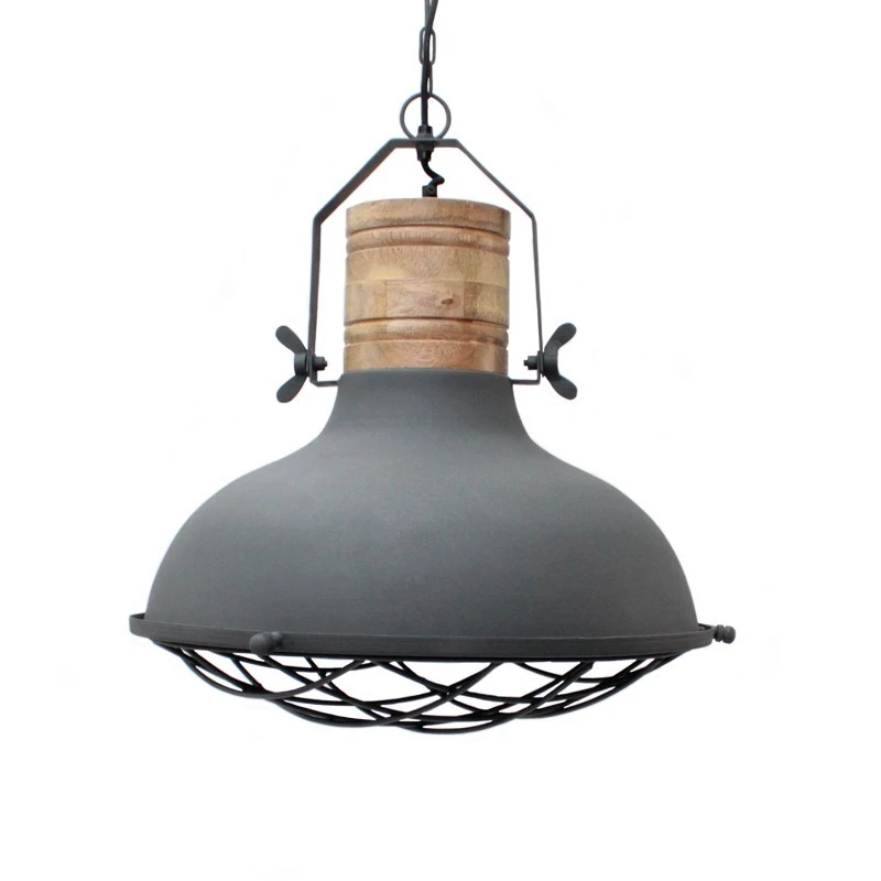 Die Lampe hängt an einer soliden Kette und ist aus Mangoholz und Metall gefertigt.