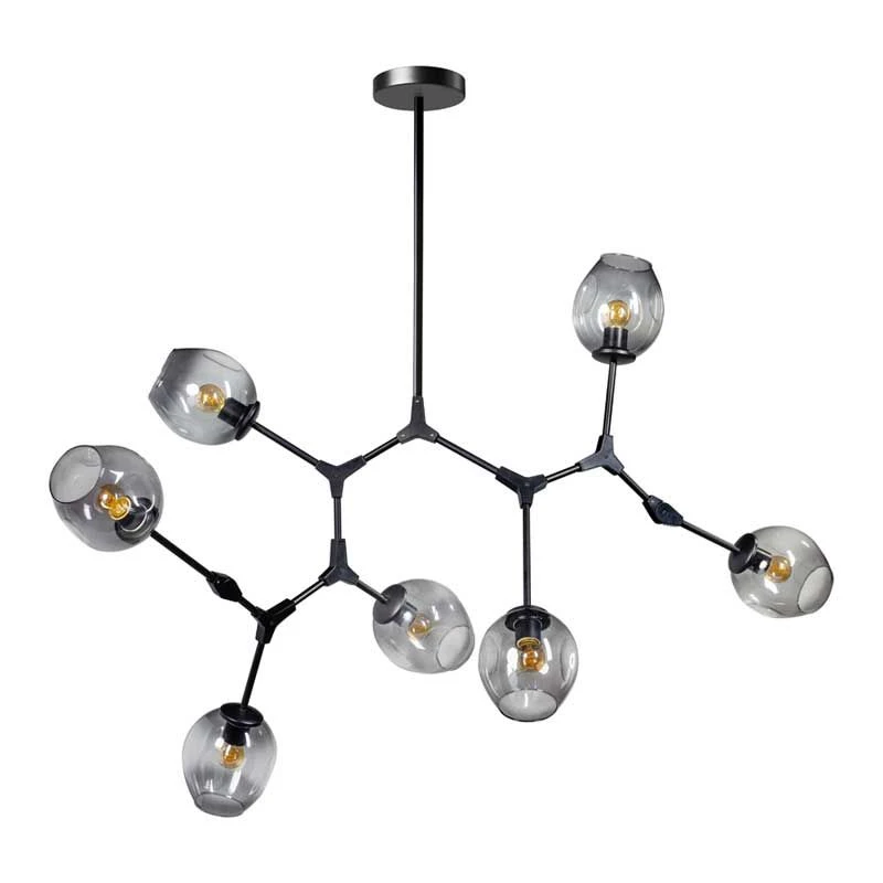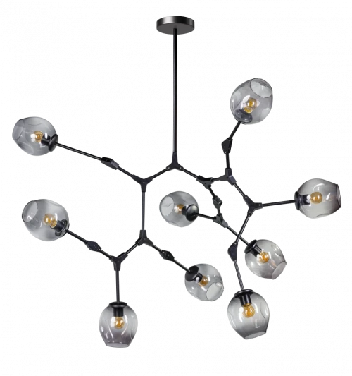 Die Hängeleuchte Lime ist eine trendige und gemütliche Lampe. Die Glasschirme sind aus Rauchglas gefertigt. Die Arme der Leuchte können Sie in die gewünschte Position drehen und mit den mitgelieferten Werkzeugen fixieren. Die Leuchte ist mit 9 oder 7 Leuchtmitteln erhältlich.