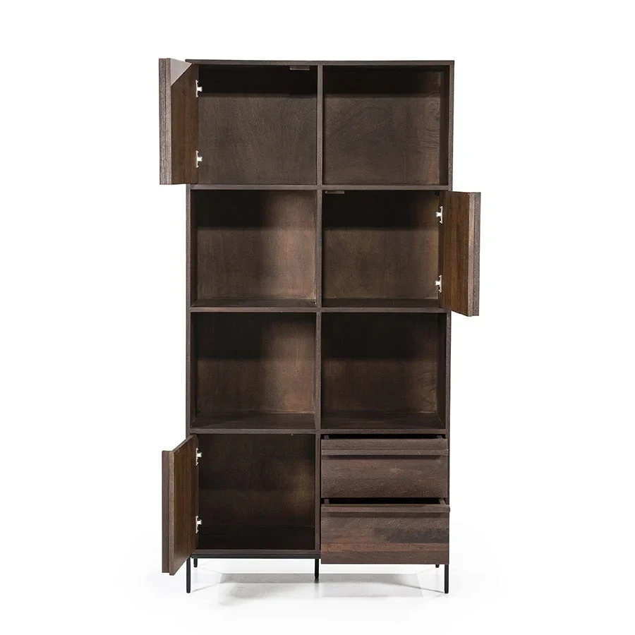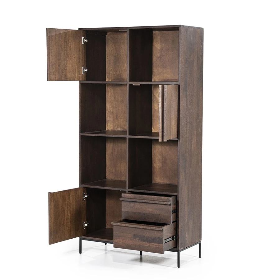 Der moderne Schrank Jimmy ist aus Mangoholz gefertigt und hat Metallbeine. Jimmy erhält sein modernes Aussehen durch seine braune Farbe und das schlichte Design. Jimmy hat 3 Türen, 2 Schubladen und 3 offene Fächer, so dass der Schrank genügend Stauraum bietet. Kombinieren Sie den Schrank mit den anderen Möbeln der Jimmy-Kollektion.