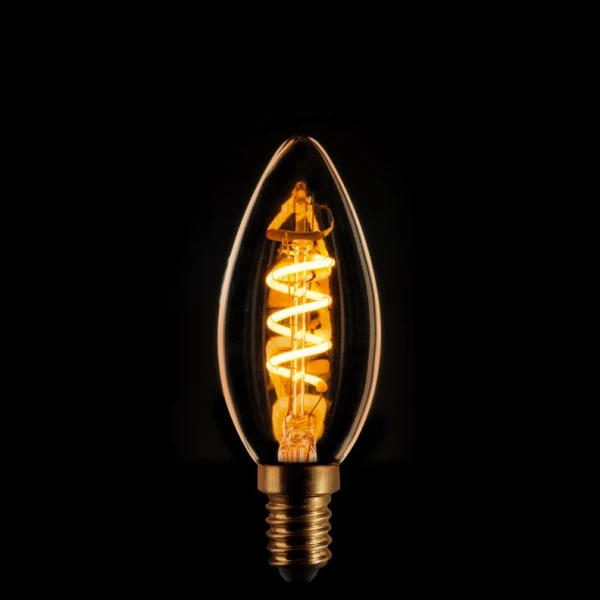Die Spirale der Kerzenlampe ist eine warme Lichtquelle. Außerdem ist die Lichtquelle mit goldfarbenem Glas ausgestattet, das der Leuchte ein stimmungsvolles Aussehen verleiht.