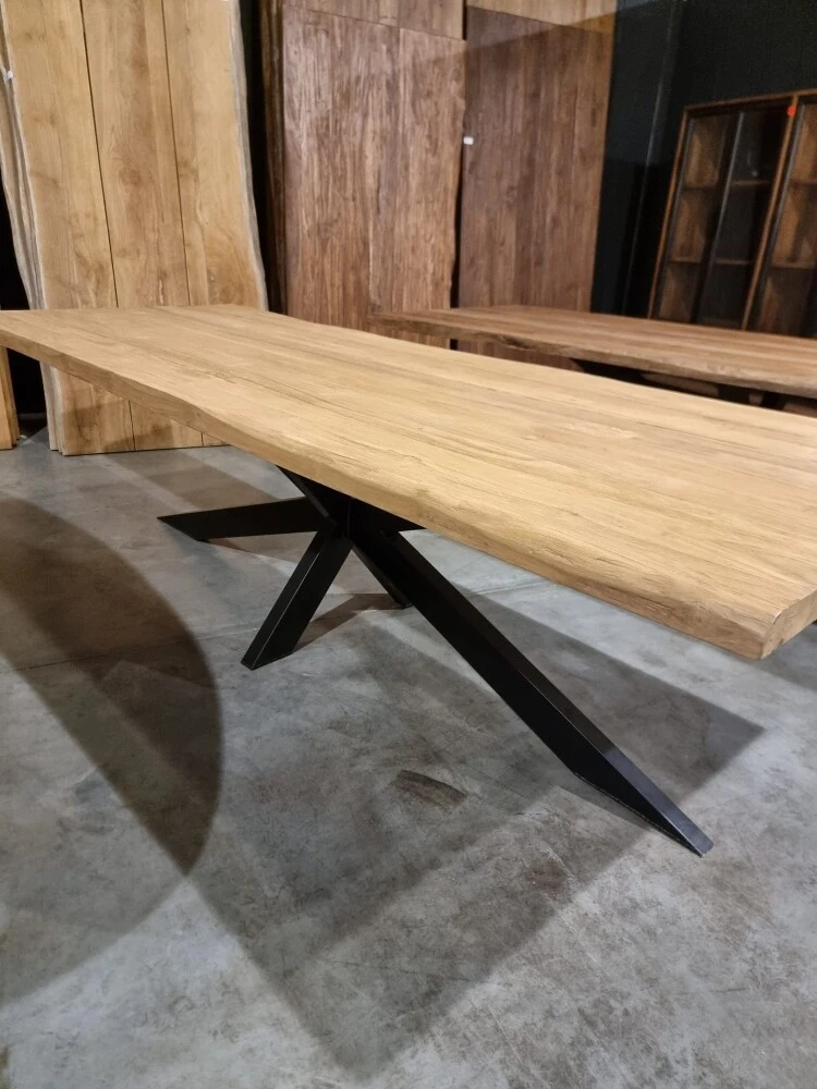 Der Tisch ist mit verschiedenen Untergestellen aus schwarzem Metall erhältlich, sowohl mit Spin-Fuß, X-Fuß und U-Fuß.
