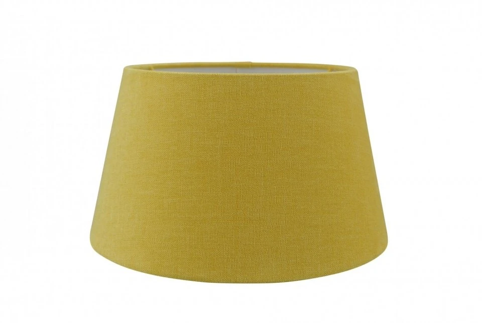 Der Lampenschirm Linda wird in einer niederländischen Werkstatt handgefertigt. Der Lampenschirm ist aus gelb Baumwolle gefertigt und hat eine weiße Innenseite, die in Kombination mit dem robusten Baumwollstoff und der weißen Innenseite ein schönes und stimmungsvolles Licht erzeugt, durch das die robuste Struktur des Stoffes schön zur Geltung kommt.
