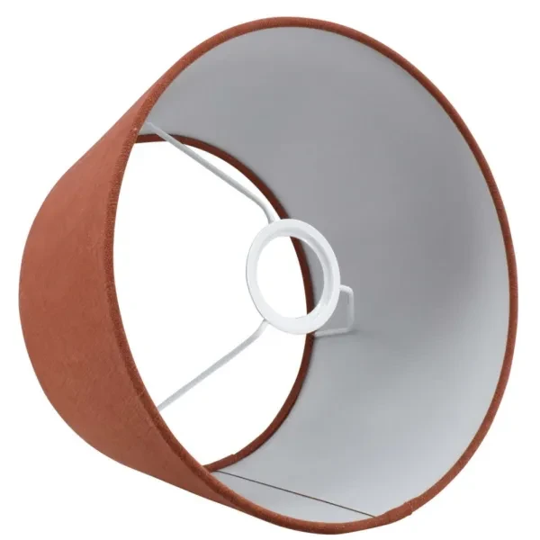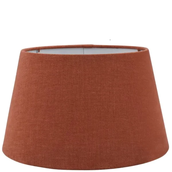 Der Lampenschirm Linda wird in einer niederländischen Werkstatt handgefertigt. Der Lampenschirm ist aus rötlich-braun Baumwolle gefertigt und hat eine weiße Innenseite, die in Kombination mit dem robusten Baumwollstoff und der weißen Innenseite ein schönes und stimmungsvolles Licht erzeugt, durch das die robuste Struktur des Stoffes schön zur Geltung kommt.