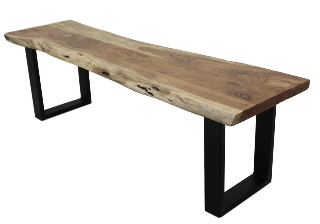 Neben dem schönen Esstisch Living Edge und dem Couchtisch Living Edge haben wir jetzt auch eine passende Bank.Diese Esszimmerbank ist aus Akazienholz mit schwarzem Metall gefertigt. Die Kombination aus Akazienholz und schwarzem Metall erzeugt eine robuste und industrielle Atmosphäre. Diese Bank passt perfekt zum Esstisch.