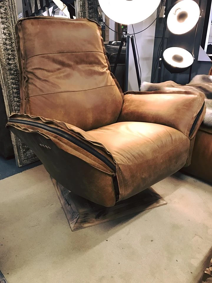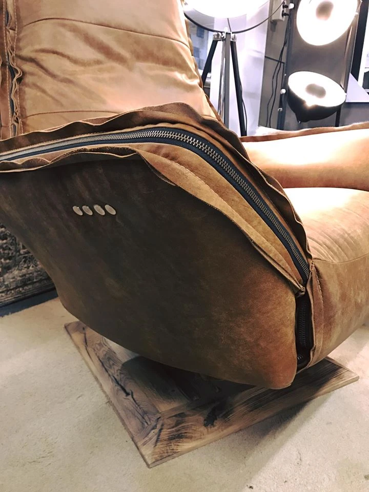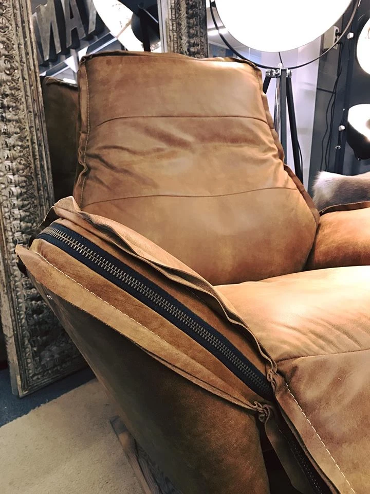 Der robuste und stabile Relax-Sessel Maranello aus der Chill Linie, mit robuster, doppelter offener Naht und Reißverschluss aus Messing.