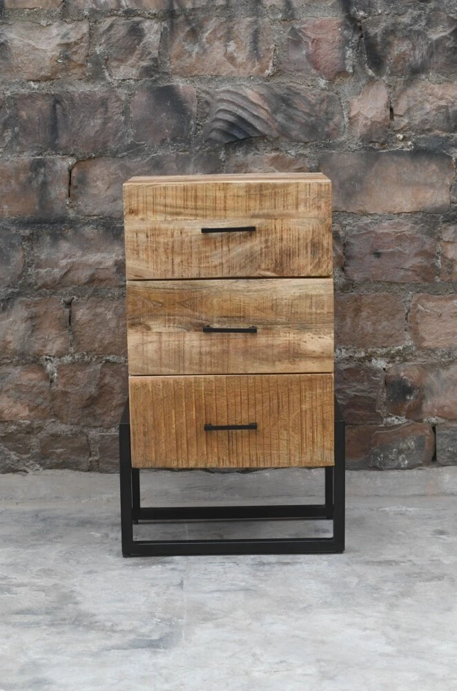 Der Nachtschrank Parma ist ein robustes Möbelstück im Industrie-Look. Dies wird durch die Kombination von Materialien erreicht. Der Rahmen und die Griffe der Schubladen sind aus schwarzem Metall gefertigt. Außerdem ist der Parma aus robustem Mangoholz gefertigt. Dieser moderne, schlicht gestaltete Nachtschrank gehört zur Serie Parma. Sehen Sie sich die gesamte Serie an und kombinieren Sie!