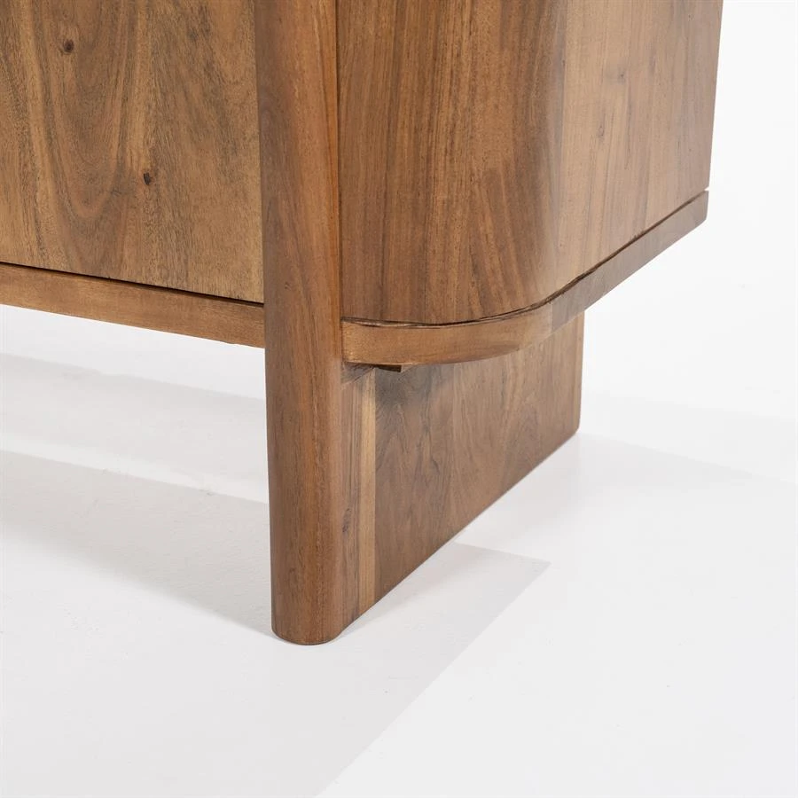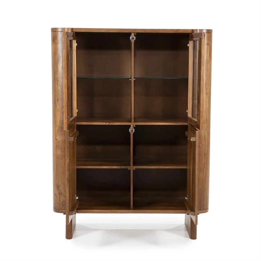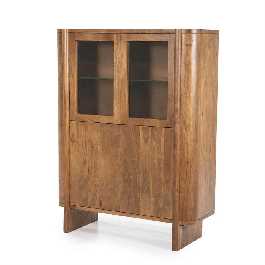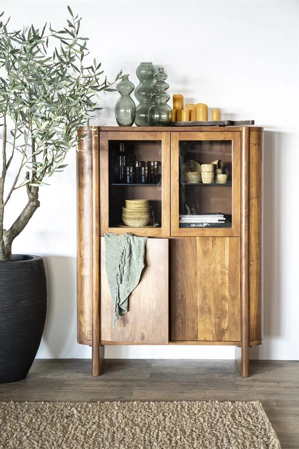Der Schrank Julian aus der Kollektion von Eleonora ist ein echter Blickfang. Julian ist aus massivem Akazienholz gefertigt und hat einen warmen Farbton. Der warme Farbton zusammen mit den runden Formen machen Julian zu einem echten Bild. Julian besteht aus 2 Türen und bietet reichlich Stauraum. Der obere Teil der Türen besteht aus Glas, hinter dem Sie dekorative Gegenstände platzieren können. Der untere Teil aus Holz kann für Gegenstände verwendet werden, die Sie lieber nicht sehen möchten. Das natürliche Aussehen in Kombination mit den runden Formen macht Julian zu einem stilvollen Schrank, der sich mit verschiedenen Inneneinrichtungen kombinieren lässt.