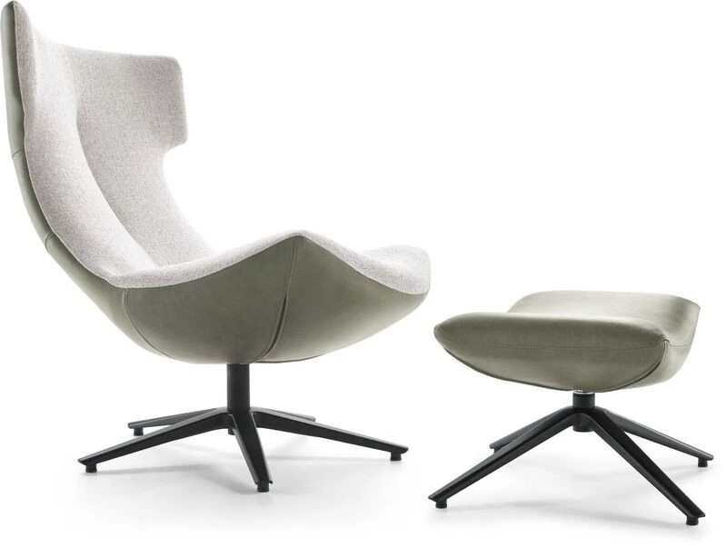 Hamer ist ein bequemer Sessel mit fantastischem Sitzkomfort. Der Sessel ist mit einem Spinnenbein ausgestattet, das optional auch drehbar ist. Hamer kann mit schönen Stoffen und Ledern oder einer Kombination davon ausgestattet werden und wird so zu einem echten Blickfang. Bei der Entwicklung des Sessels wurde großer Wert auf den Komfort gelegt. Die Verwendung von Nosagfedern und HR-Schaum sorgt für besten Sitzkomfort. Ein passender Fußhocker ist ebenfalls erhältlich.