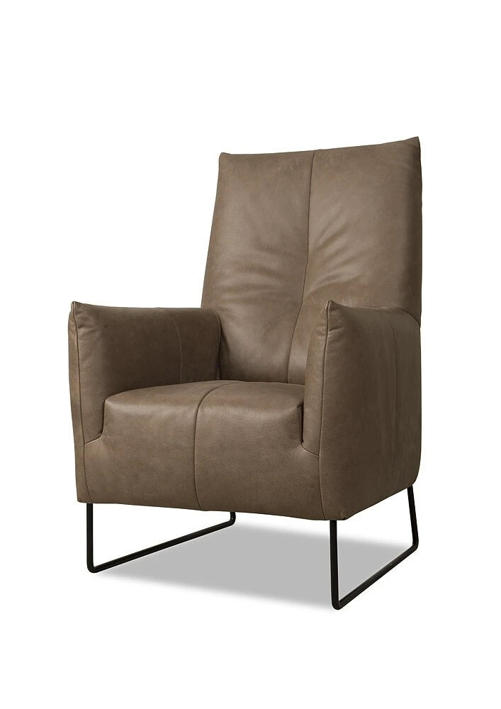 Schöner Sessel mit sichtbarer Naht in der Mitte der Sitzfläche. Die Nähte können beliebig gewählt werden. Rahmen mit schwarzen Metallbeinen. Wählen Sie zwischen einer niedrigeren (L) oder höheren (H) Rückenlehne! Lieber einen drehbaren Sessel? Sessel Rodi (drehend) anzeigen.