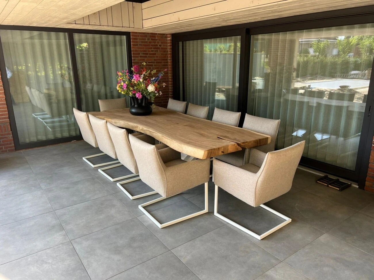 Die Tischplatte ist aus massivem Suarholz gefertigt, was jede Tischplatte zu einem Unikat macht.