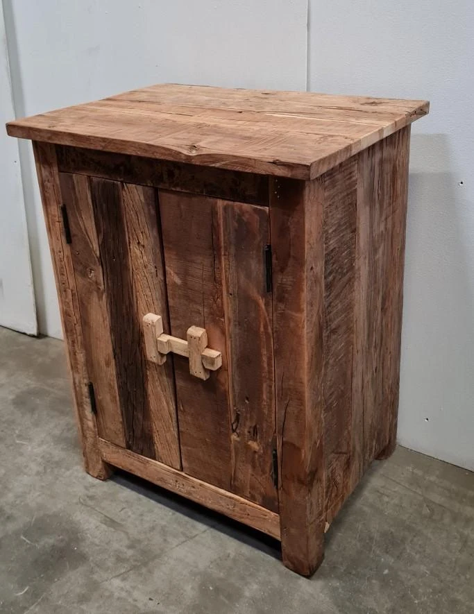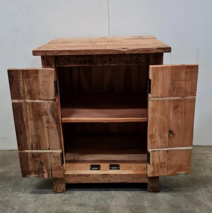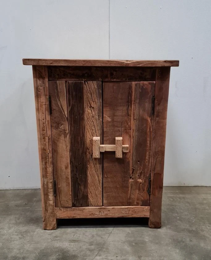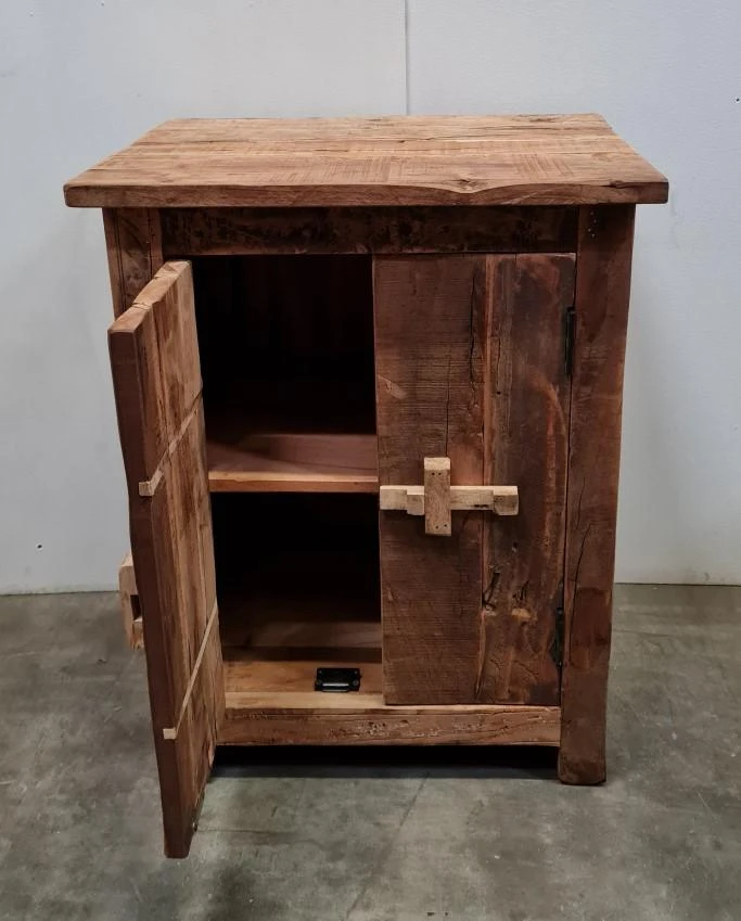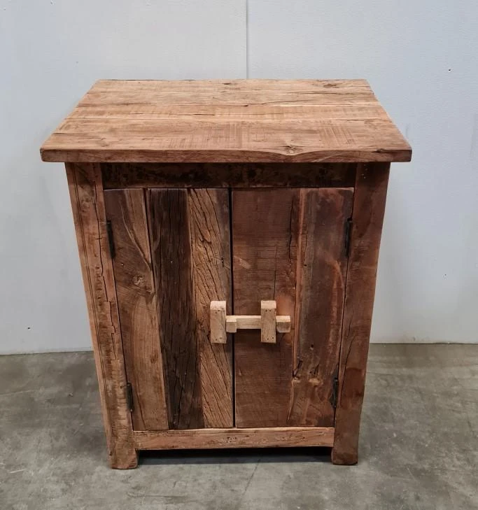 Der Nachttisch ist aus robustem Altholz gefertigt, daher ist jedes Stück ein Unikat. Mit seinem robusten Erscheinungsbild lässt sich dieser Schrank wunderbar mit einer industriellen oder ländlichen Einrichtung kombinieren.