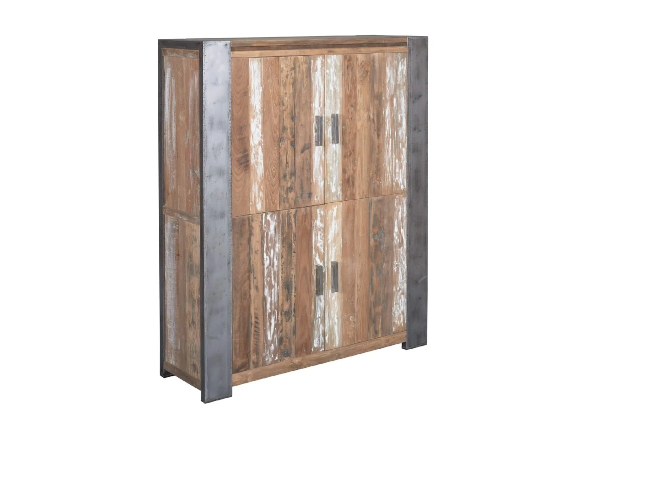 Truhenschrank Novara aus recyceltem Teakholz mit altem Stahl.