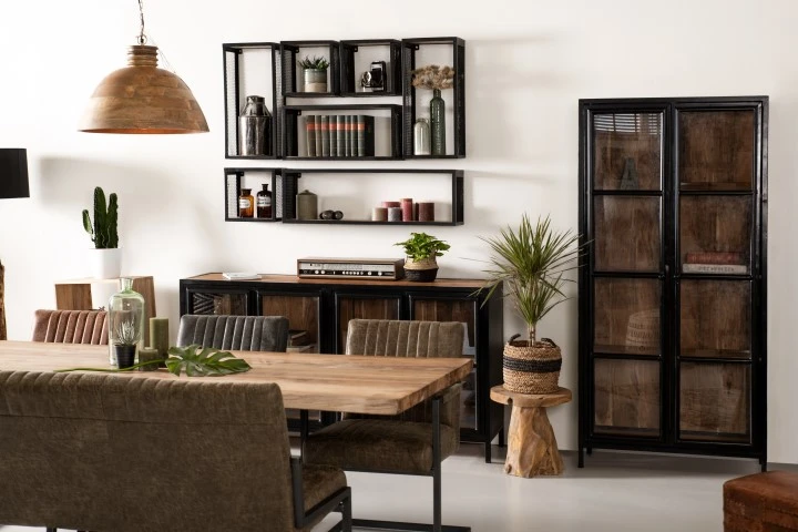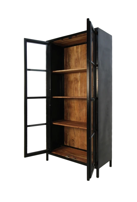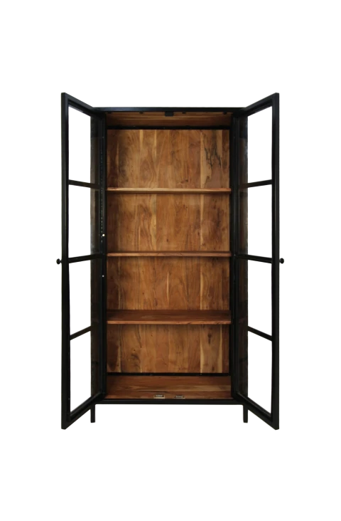 Die Vitrine Kingston ist ideal für alle Ihre Accessoires. Die Türen sind dank des Magnetverschlusses leicht zu schließen. Das robuste verarbeitete Metall in Kombination mit dem massiven Akazienholz verleiht dem Schrank sofort ein robustes Aussehen. Dadurch eignet sich der Schrank sowohl für eine ländliche als auch für eine industrielle Einrichtung. Siehe auch das Kingston Sideboard.