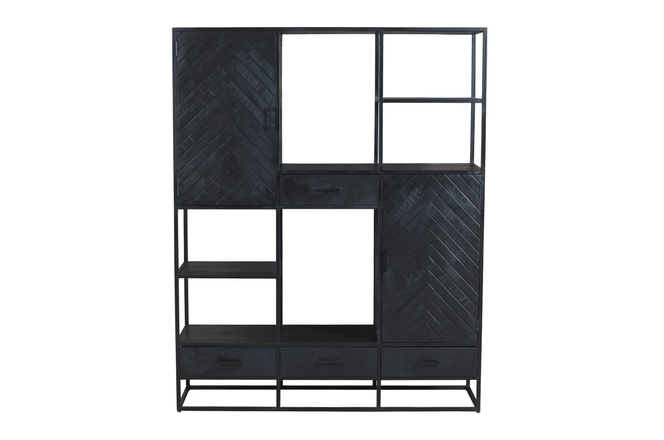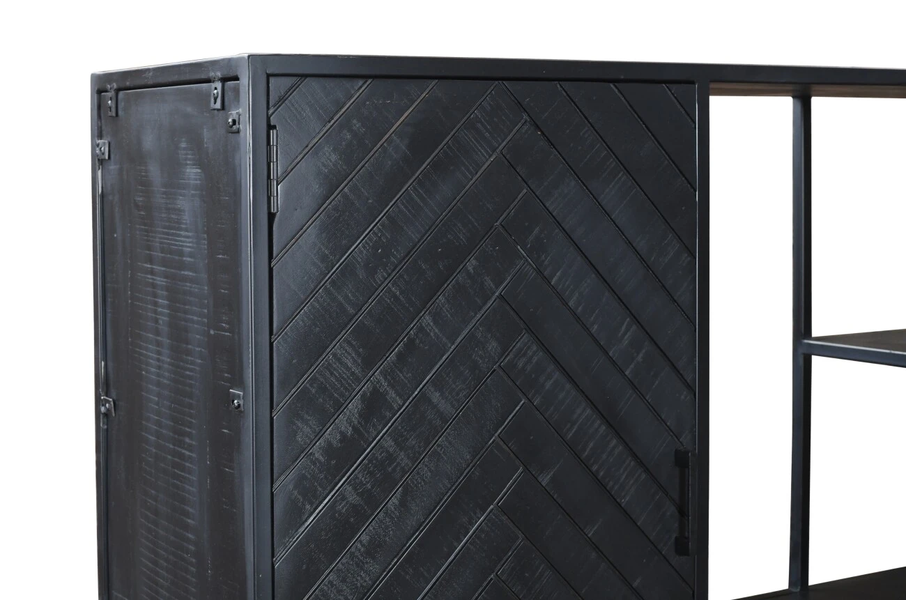 Der Fächerschrank Utah ist ein schönes Möbelstück mit vielen Möglichkeiten. Seine Türen und Schubladen bieten reichlich Stauraum, und die offenen Fächer eignen sich perfekt zur Präsentation von Büchern, Pflanzen oder anderen Wohnaccessoires. Utah ist aus strapazierfähigem Mangoholz gefertigt und verfügt über einen stabilen, schwarzen Metallrahmen. Durch die Kombination der Materialien entsteht ein industrieller Look, aber dank des Fischgrätenmusters in den Türen passt Utah auch gut zu einem modernen Wohnstil.